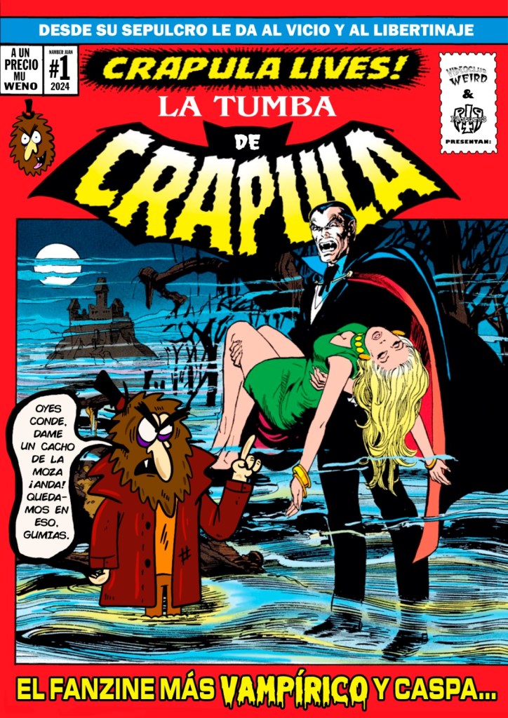 Crápula, el vampiro más guarreras del ultramundo, tiene el honor de auspiciar y presentar el primer número de su propio fanzine. Para la ocasión, reclutando a lo más gañán de la Roqueta para juntar letras sobre el chupasangres más famoso de la ficcón, después de él (por supuesto): el CONDE DRÁCULA.